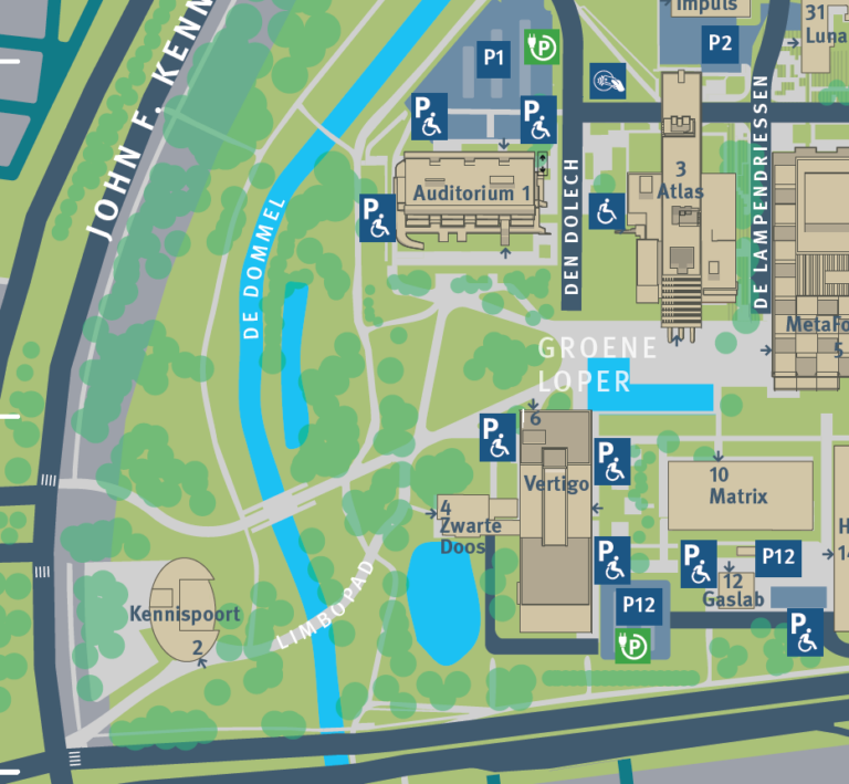 De locatie is verplaatst naar de “Zwarte doos”. Dit is het eerste gebouw op de campus vanaf het station.