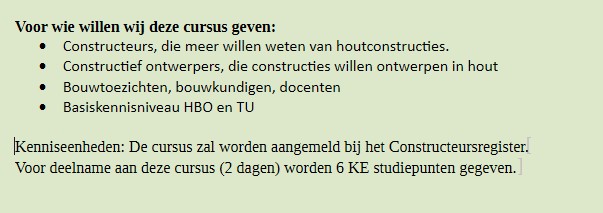 De cursus “Construeren in Hout” is in 2025 voor de 5e keer gegeven. Door het bestuur is besloten om de cursus in 2026 te herhalen.