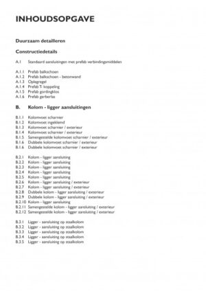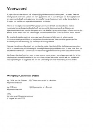 De Werkgroep Constructie Details heeft een map samengesteld van de meest voorkomende aansluitdetails in houtconstructies. Deze details moeten de ontwerpende architecten en ingenieursbureaus een handvat geven voor de detaillering. Er is een zo breed mogelijk scala van aansluitingen op diversen materialen belicht. Het werd een algemene handreiking hoe houtconstructies gedetailleerd kunnen worden zonder expliciet het statische systeem en het krachtenspel in de verbinding doorgerekend te hebben. Het gaat om een principe. De details zijn gebaseerd op de kennis en inzicht van ervaren constructeurs en fabrikanten.