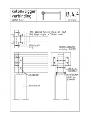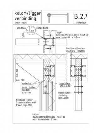 Het uiteindelijke definitieve constructieve detail in afmeting met bevestigingsmiddelen dient door de gespecialiseerde houtconstructeur nader te worden uitgewerkt.